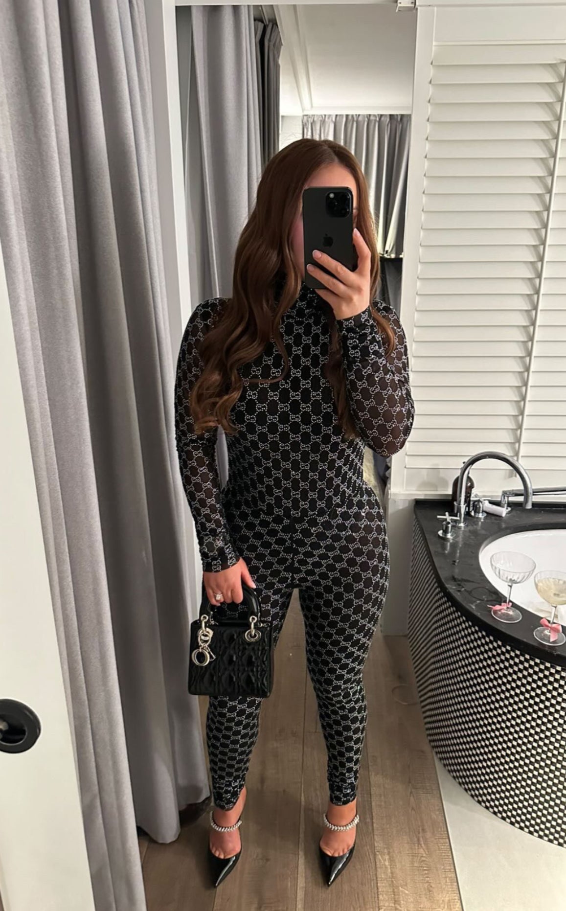 Black GG Diamante Mesh IN STOCK