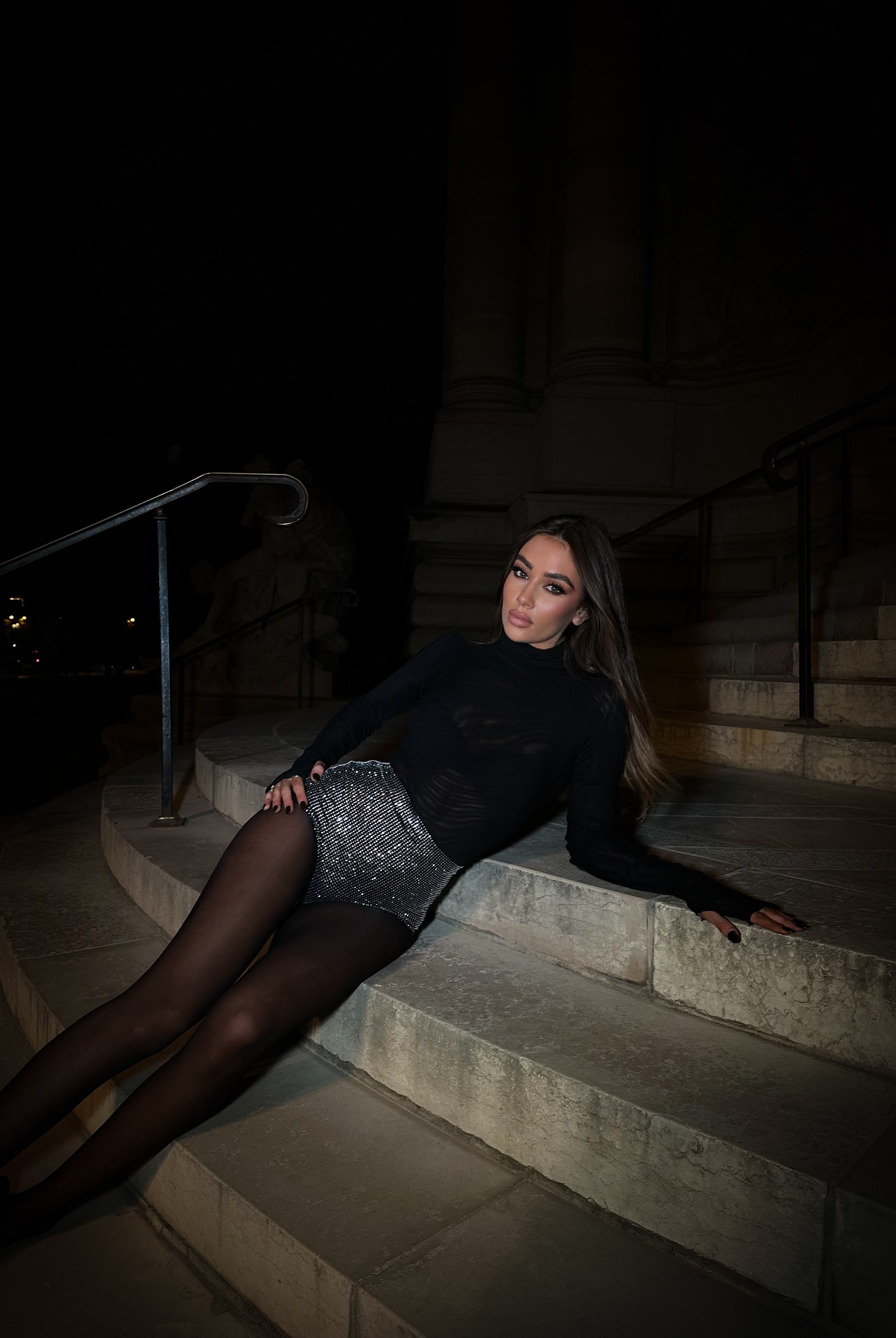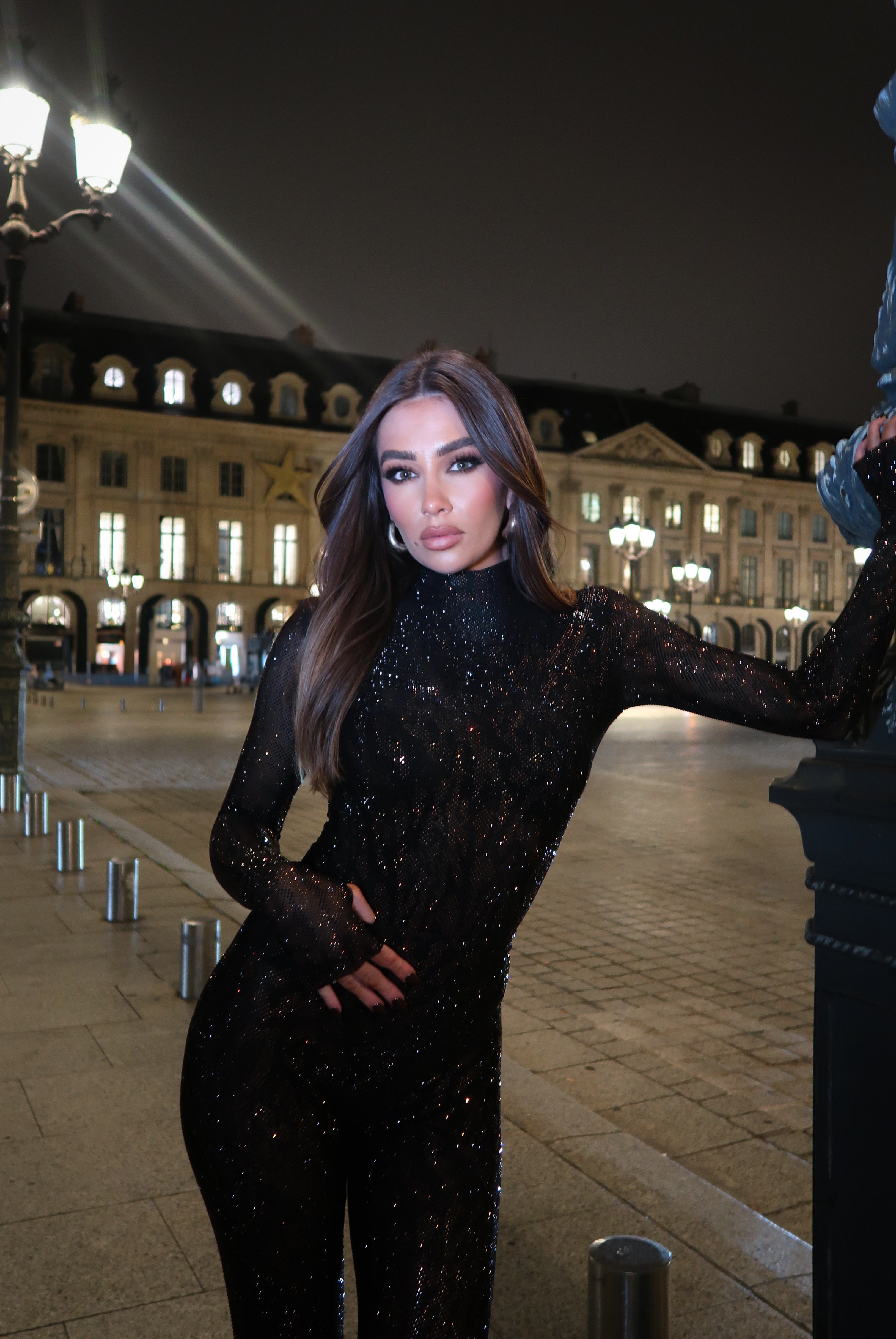 Black Starfall Diamante Mesh